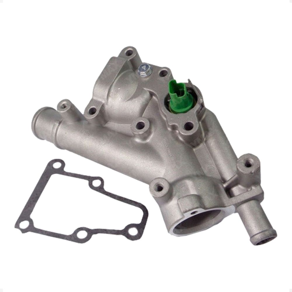 Função: Passagem do liquido de arrefecimento e suporte para o sensor de temperatura. Funcionamento: É ligado ao sistema de arrefecimento do carro através de mangueiras e serve de passagem do liquido de arrefecimento e por estar ligado ao sensor de temperatura permite que o mesmo realiza sua função corretamente.