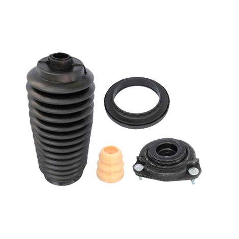 O kit amortecedor que normalmente é composto por coxim (com e sem rolamento), batente e coifa tem a função de assegurar o máximo desempenho dos amortecedores. O coxim fixa o conjunto do amortecedor no carro e evita que as trepidações do pavimento cheguem até a carroceria. Já o batente evita o famoso “final de curso” na movimentação do amortecedor. Por fim, a coifa evita a entrada de sujeira no conjunto haste e retentor. Verificar quando executar o alinhamento ou qualquer manutenção da suspensão.